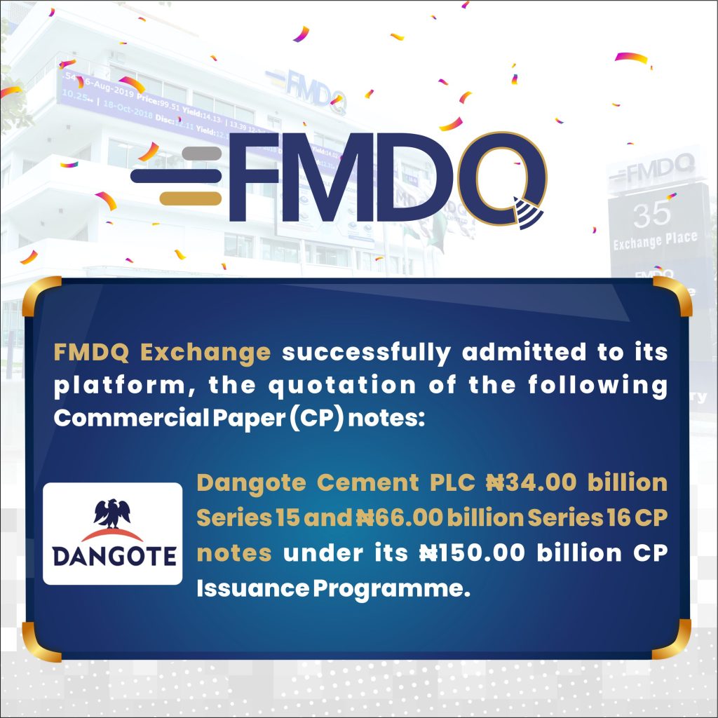 FMDQ Exchange Admits Dangote Cement’s ₦100.00bn Commercial Paper Notes