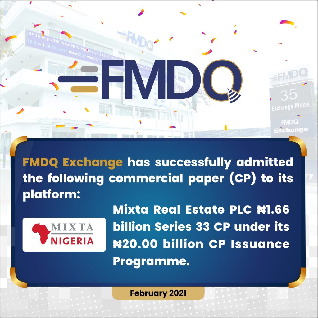 Mixta Real Estate PLC Quotes Series 33 Commercial Paper on FMDQ Exchange
