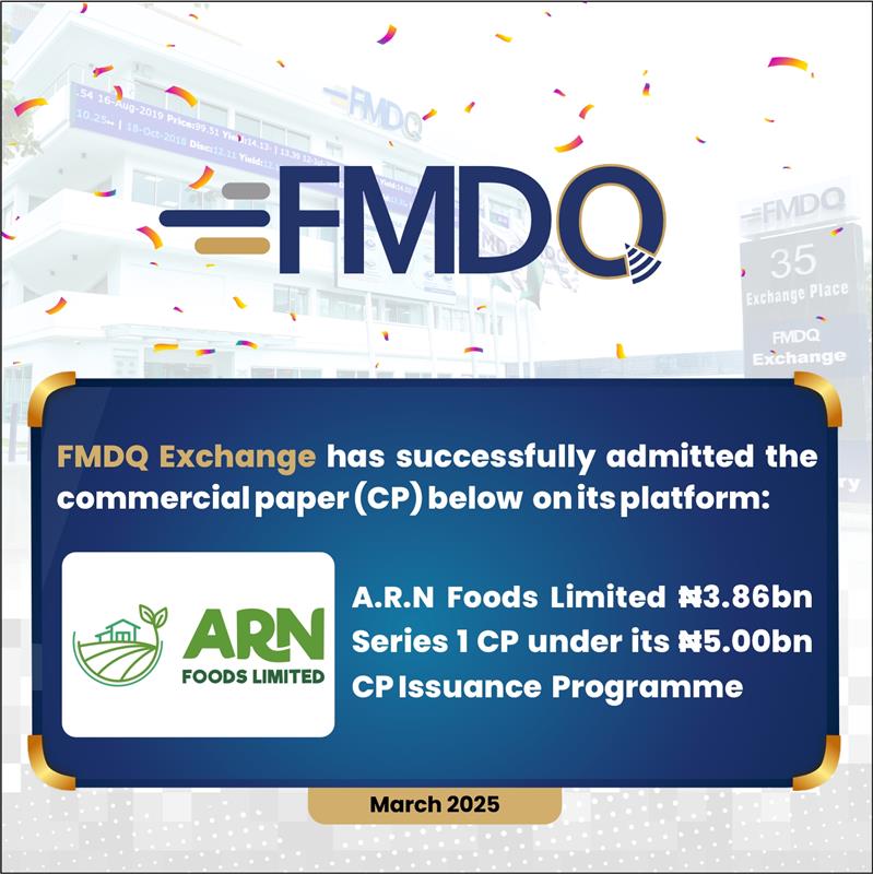 FMDQ Exchange Strengthens Agro-Sector Financing with A.R.N Foods’ ₦3.86 Billion Commercial Paper Quotation